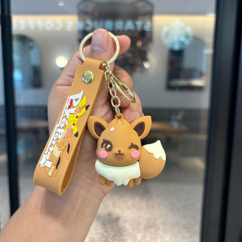 ⚡ Pokémon Eevee Family Keychain – Cute Plush Toy Style PVC Pendant