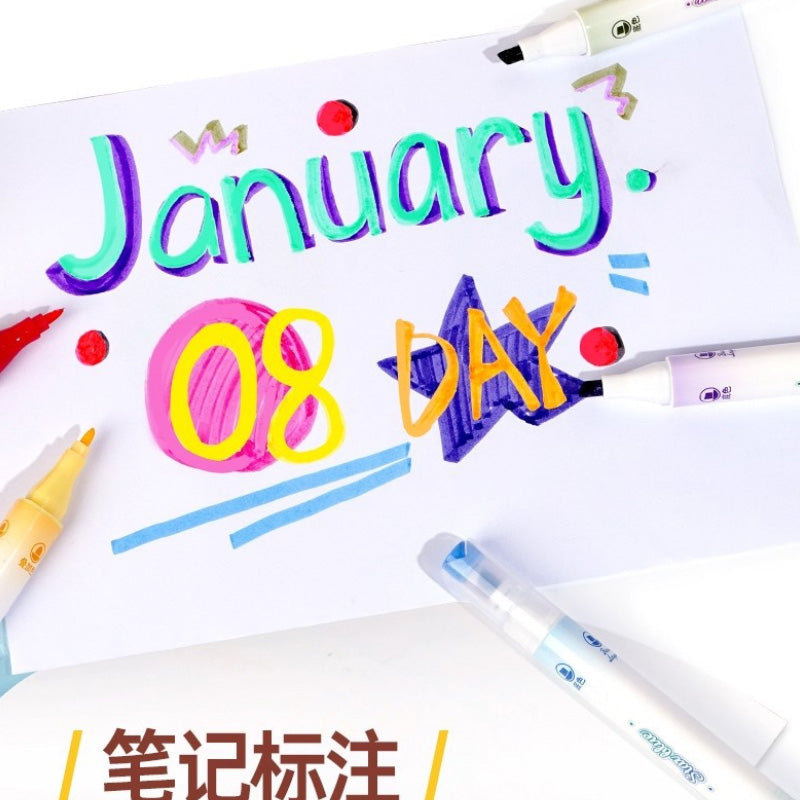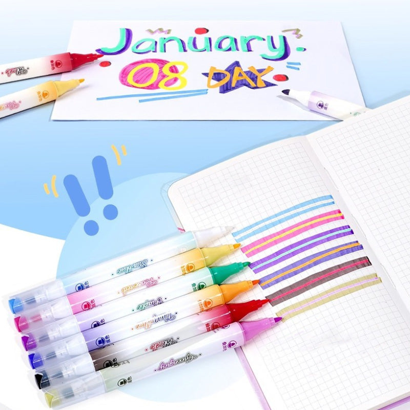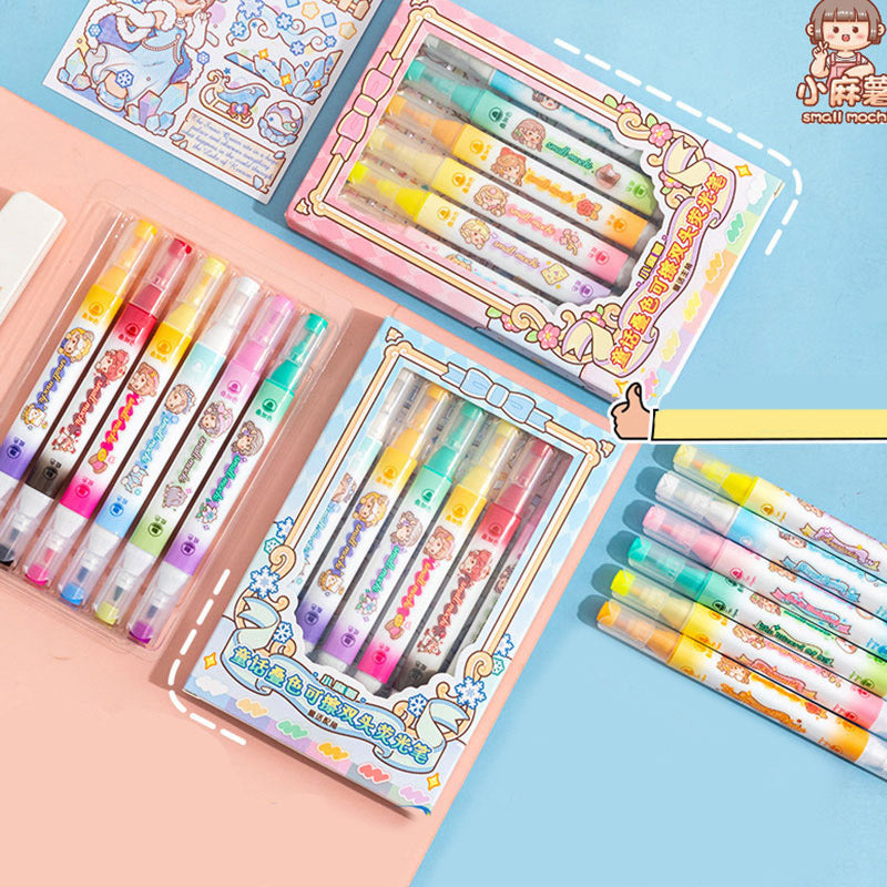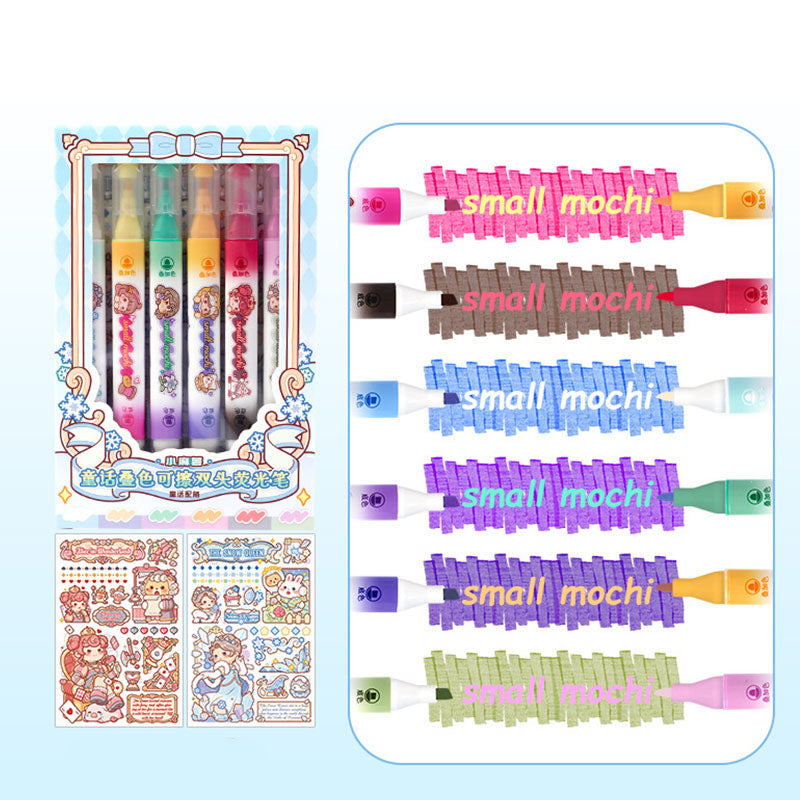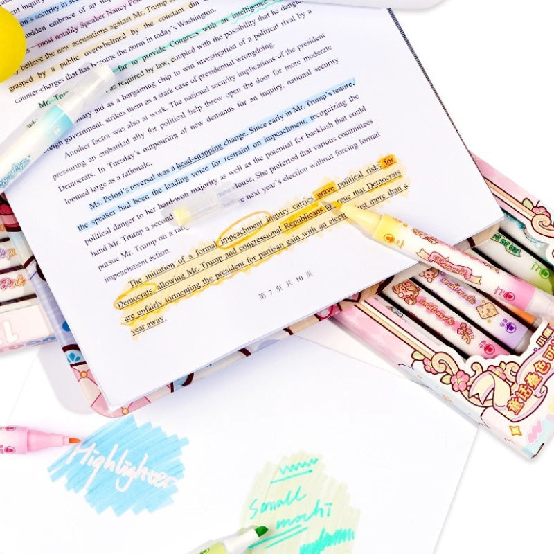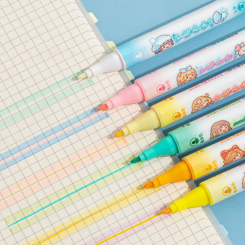 These adorable Mochi-style dual-tip highlighters bring soft pastel color + dreamy kawaii vibes to every page. With a wide tip for coloring and a fine tip for writing, they’re perfect for notes, doodles, journaling & bullet planners. Smooth, vibrant, and sooo cute you’ll want to highlight everything! 💕📚✨