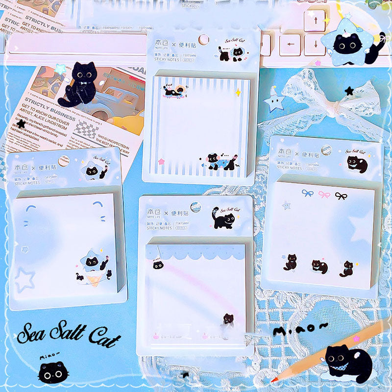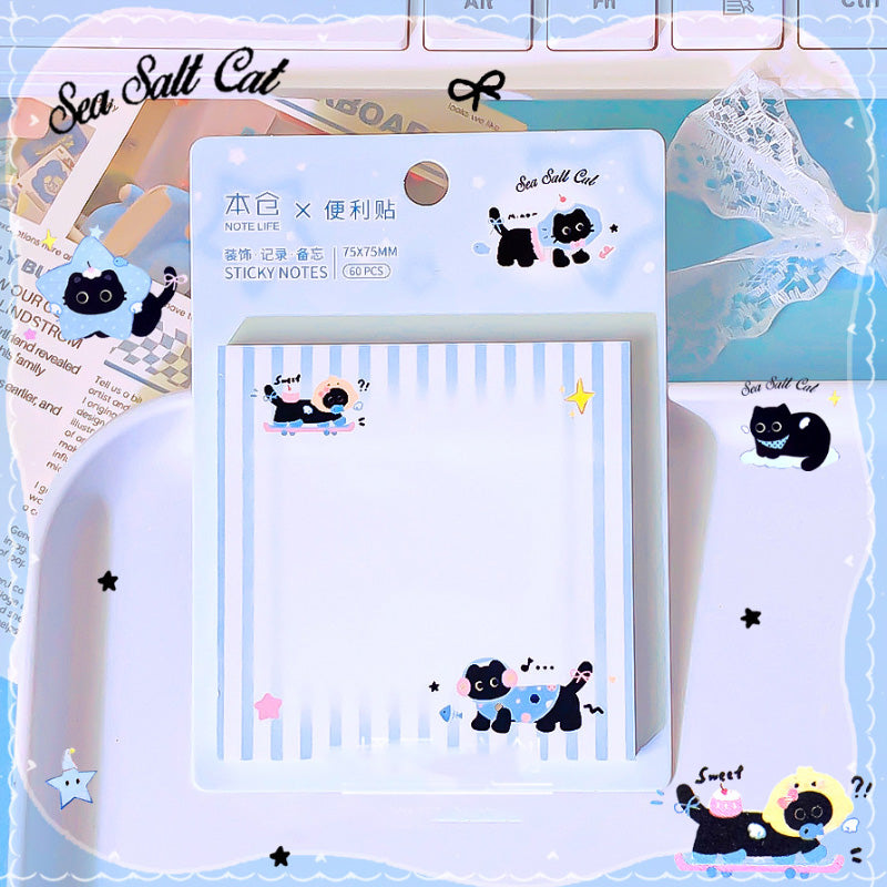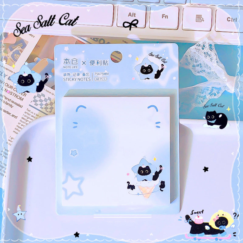 Make your desk a little sweeter with the Sea Salt Cat Sticky Notebook! Featuring soft pastel blue tones, adorable Sea Salt Cat illustrations, and high-quality adhesive, these 75×75mm sticky notes bring charm and functionality together. Perfect for journaling, reminders, to-do lists, and aesthetic study notes.