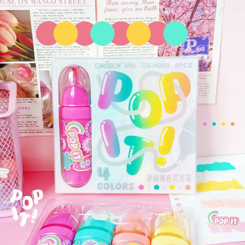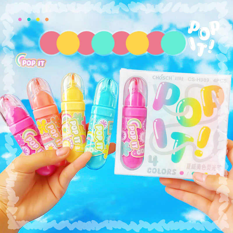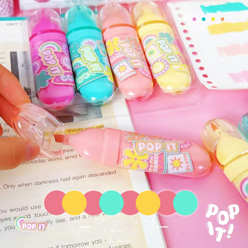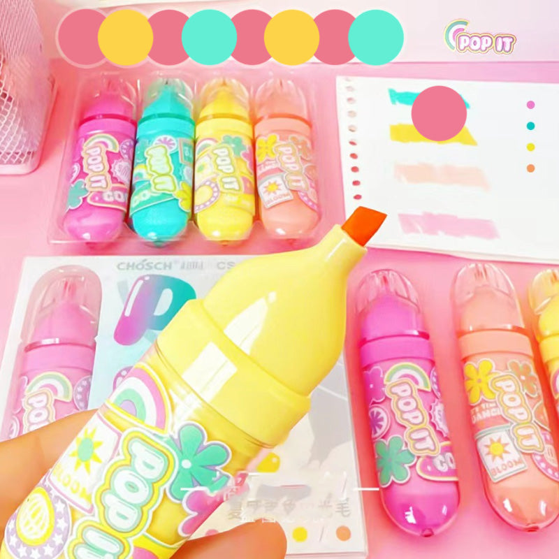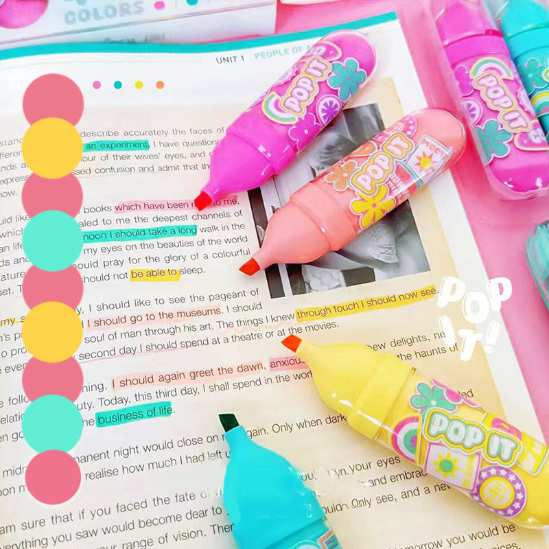 Brighten your notes with these Pop It–inspired tropical highlighters 🌈💛💗💙 Each marker feels like summer in your pencil case — juicy colors, bubbly designs, and soft pastel aesthetics that make journaling extra fun! Perfect for school, planners, diaries, or aesthetic doodles. 🍧🌺✨