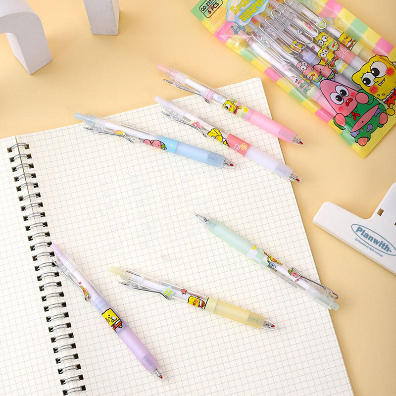 Bring Bikini Bottom to your pencil case with this adorable 6-pack Spongebob & Patrick pastel click-pen set! 💛🌊✨