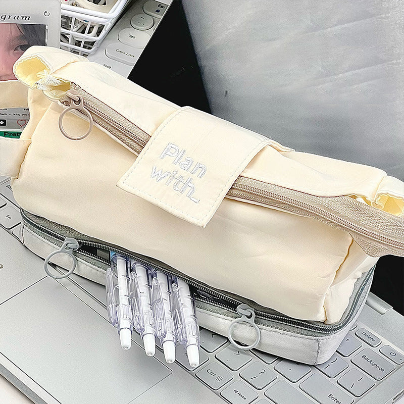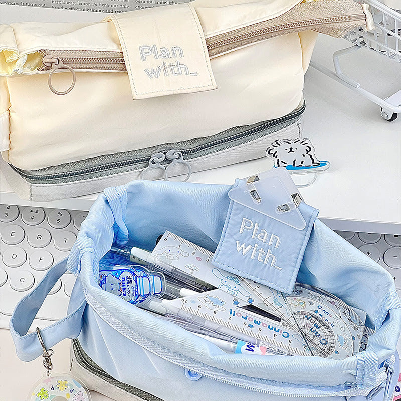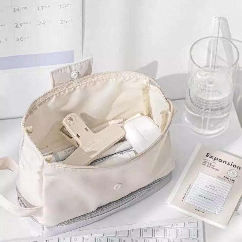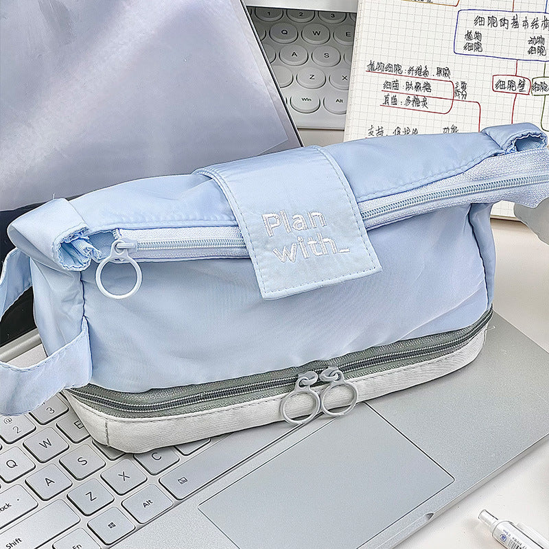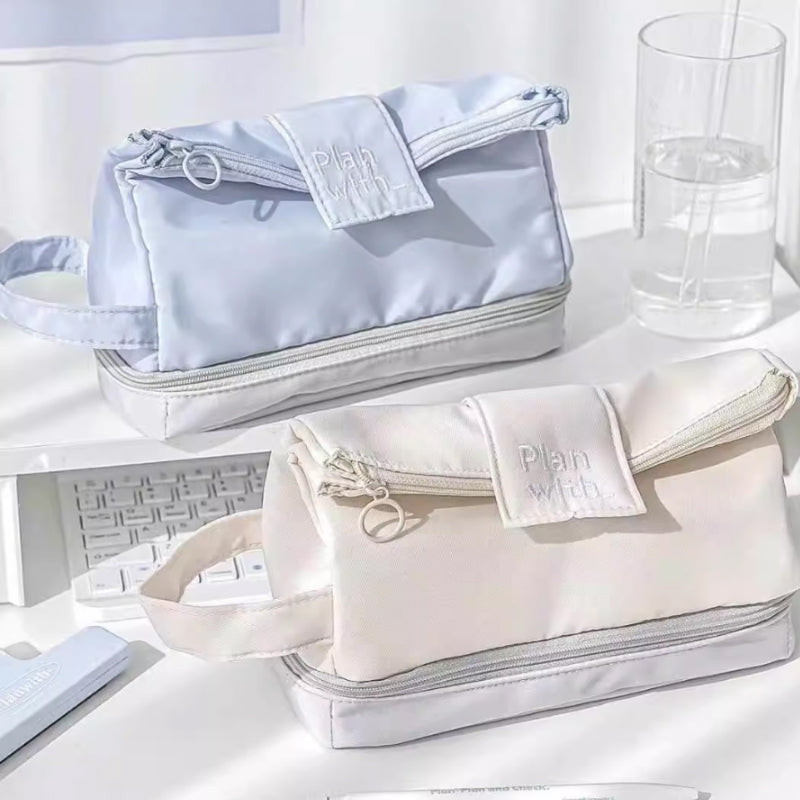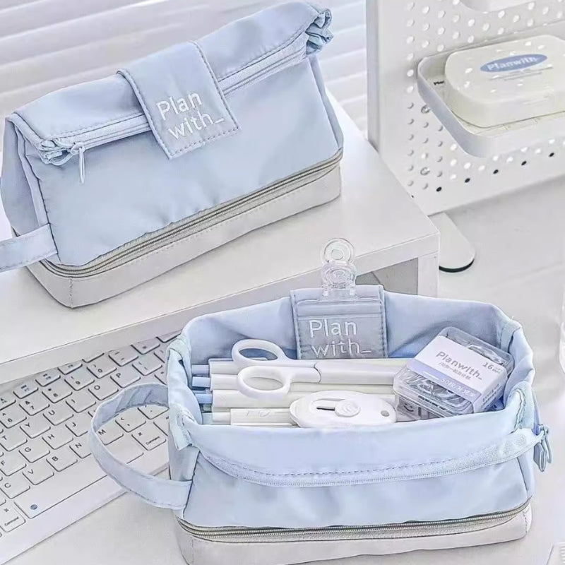 Bring calm organization to your study setup with this Japanese-Style Minimalist Double-Layer Pencil Case. ๐ฟ Designed in soothing pastel tones of blue and cream cyan, this elegant storage bag combines fresh aesthetics with practical functionality. The dual-compartment design offers generous space for pens, markers, scissors, and stationery essentials, while its structured base and soft polyester body ensure durability with a modern look. Perfect for students, planners, and creatives who love the INS clean aesthetic. โจ