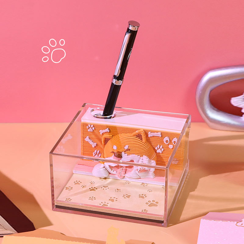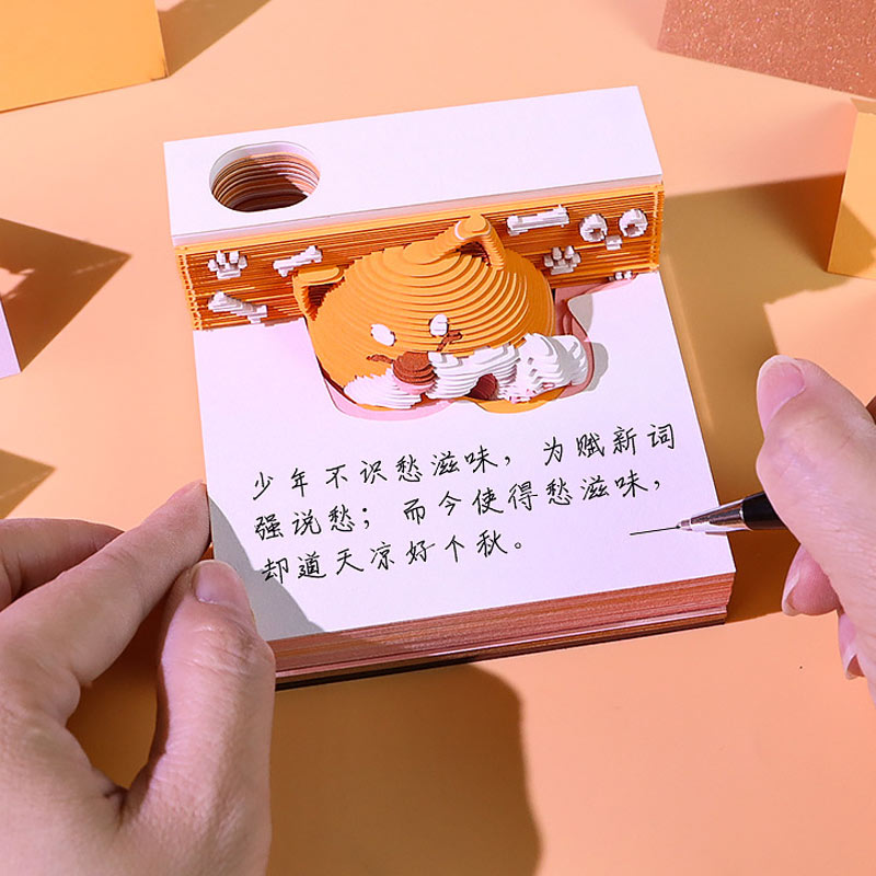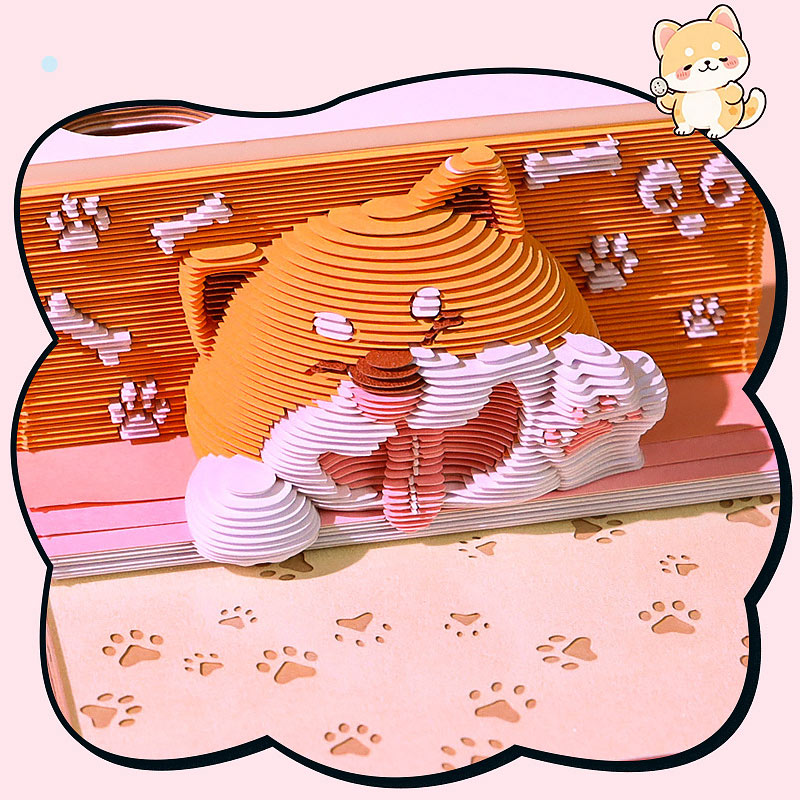 Featuring 3D layered paper-carved puppy designs, this pad doubles as a desk ornament, note pad, and creative gift. Perfect for students, office desks, or as a cultural and creative collectible, it combines practicality with playful aesthetics. 📅💖
