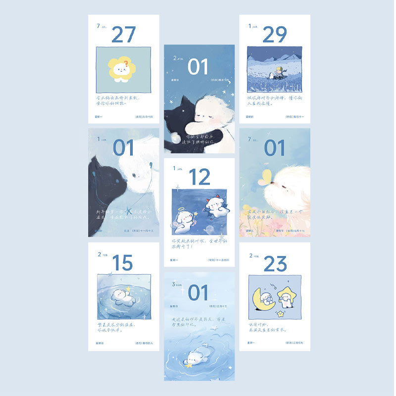 With its soft colors, hand-drawn art style, and easy-to-flip layout, this 365-day desk calendar doubles as a decorative book—bringing warmth, creativity, and positivity to your everyday routine. 🗓️💛