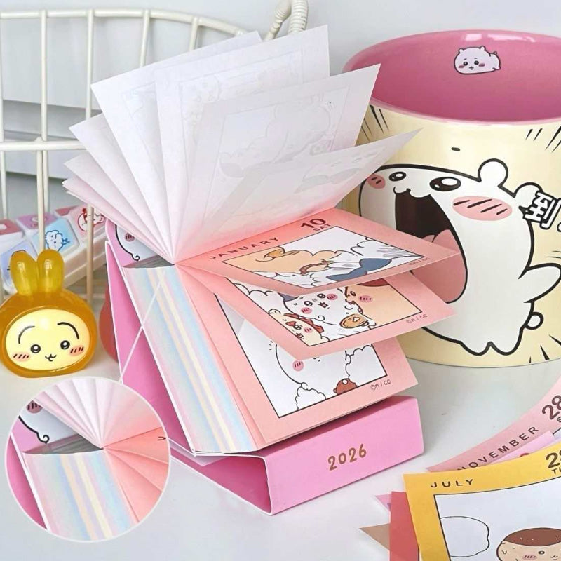 Bring instant happiness to your study desk with this adorable Kawaii 2026 Mini Calendar 🌸✨. Each tear-off page features a new charming illustration — perfect for students who love cute, healing-style stationery. The compact stand makes it a delightful desk ornament, while sticky-back pages let you paste your favorite days into journals, planners, or notebooks. A cheerful little companion for daily motivation and smiles 🍑🎀🌈.