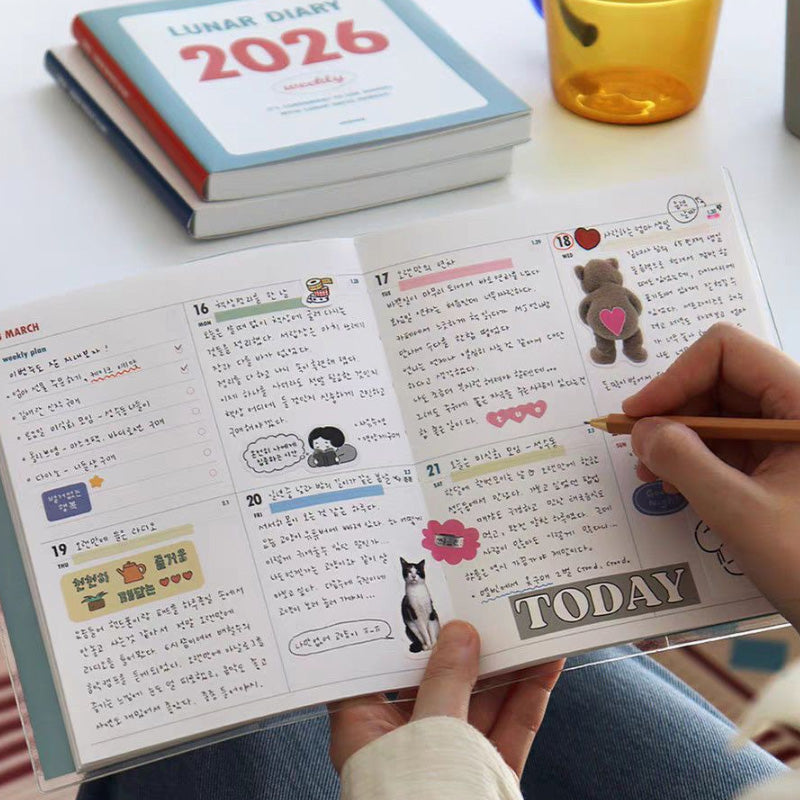 Stay organized in style with this Korean INS-inspired 2026 Lunar Year Planner, designed for students and creatives who love clean, modern layouts. Featuring monthly and weekly spreads with lunar dates, it brings clarity and structure to your daily routine. The PVC hardcover and perfect binding ensure durability, while the minimalist aesthetic makes it an elegant must-have for journaling, planning, or study use.