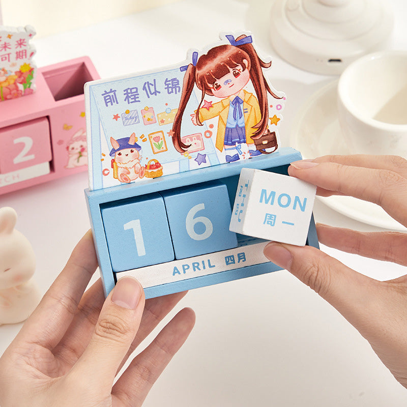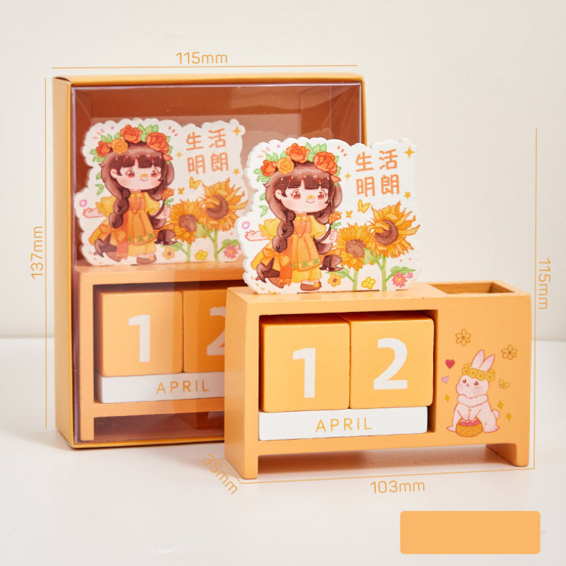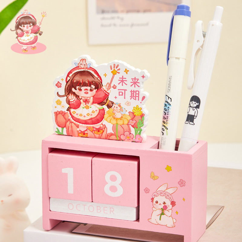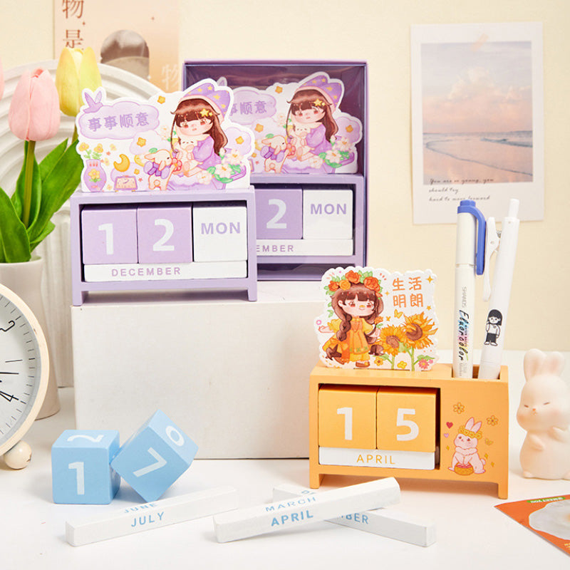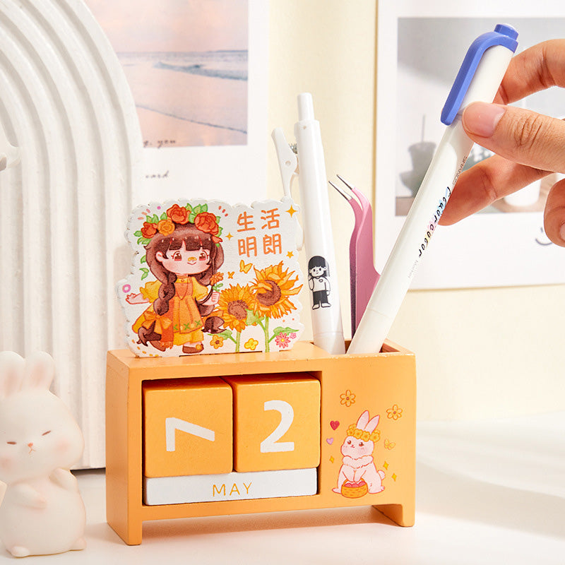 Crafted from smooth solid wood and decorated with soft pastel illustrations, it brings instant calm, charm, and kawaii vibes to any workspace. Rotate the date blocks daily, use the side compartment for pens, and enjoy a long-lasting decor piece that never expires! π°π