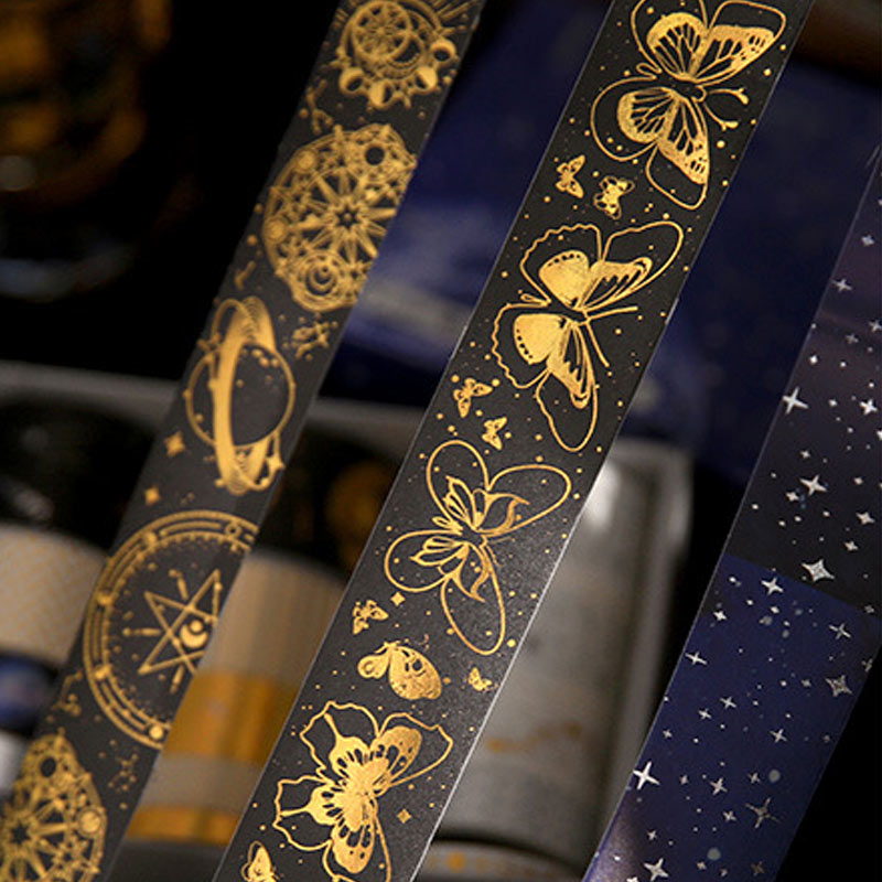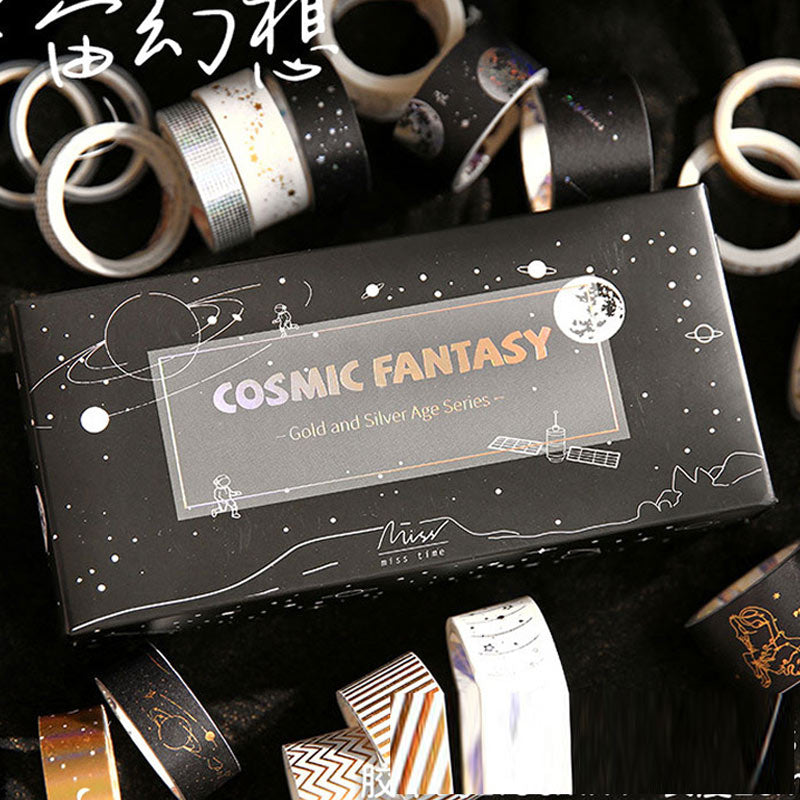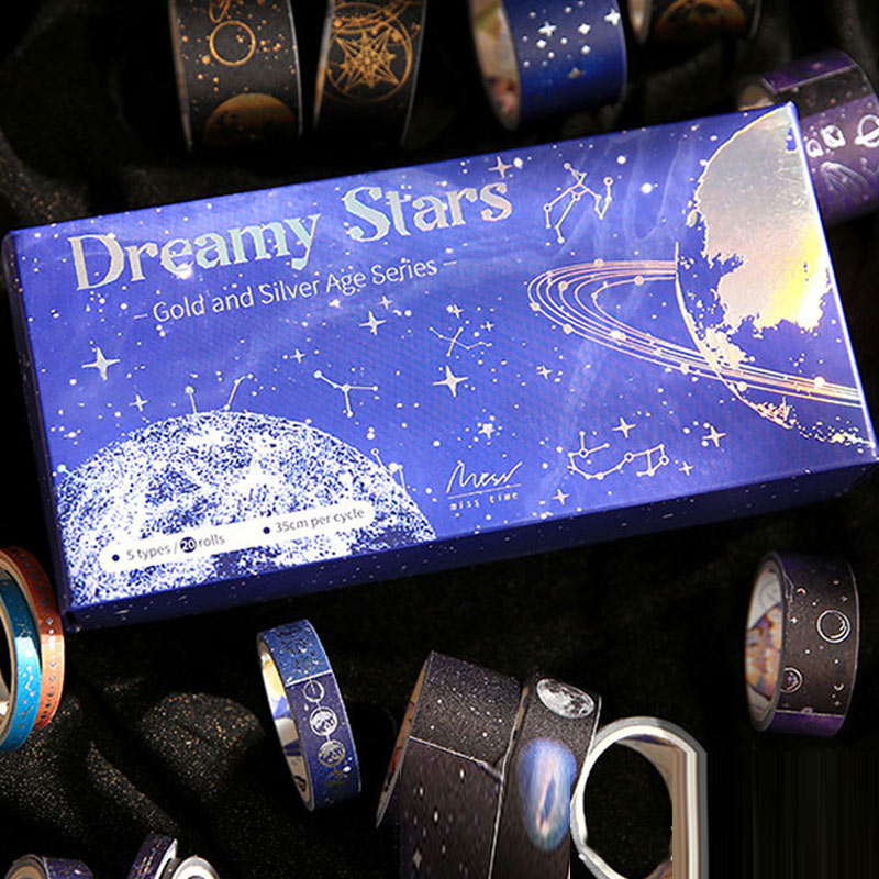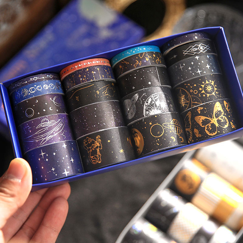 Bring the cosmos to your journals and crafts with the Picking Up Starry Sky Tape Set! Featuring 20 rolls of light-picking and hot-stamped retro cosmic designs, these tapes are perfect for decorating notebooks, scrapbooks, planners, and creative landscaping projects. Add shimmer, style, and fantasy to every page.
